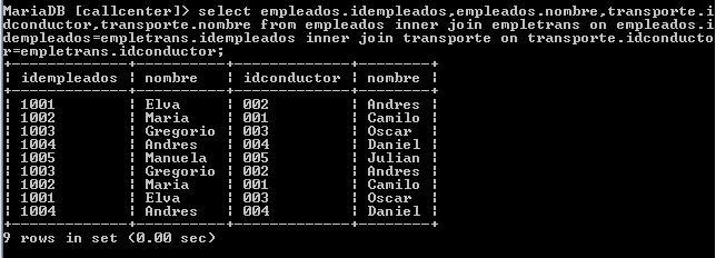select empleados.idempleados,empleados.nombre,transporte.idconductor,transporte.nombre from empleados inner join empletrans on empleados.idempleados=empletrans.idempleados inner join transporte on transporte.idconductor=empletrans.idconductor;