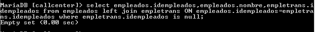 select empleados.idempleados,empleados.nombre,empletrans.idempleados from empleados left join empletrans ON empleados.idempleados=empletrans.idempleados where empletrans.idempleados is null;