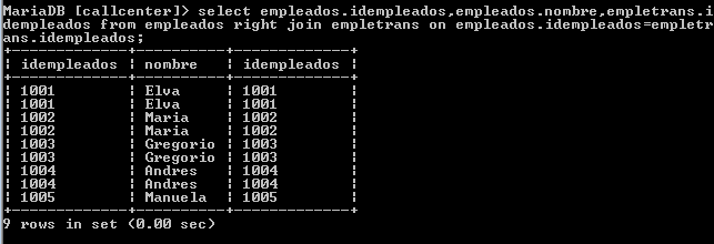 select empleados.idempleados,empleados.nombre,empletrans.idempleados from empleados right join empletrans on empleados.idempleados=empletrans.idempleados;